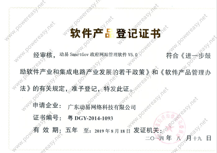 軟件產(chǎn)品登記—?jiǎng)右譙martGov政府網(wǎng)站管理軟件V5.0