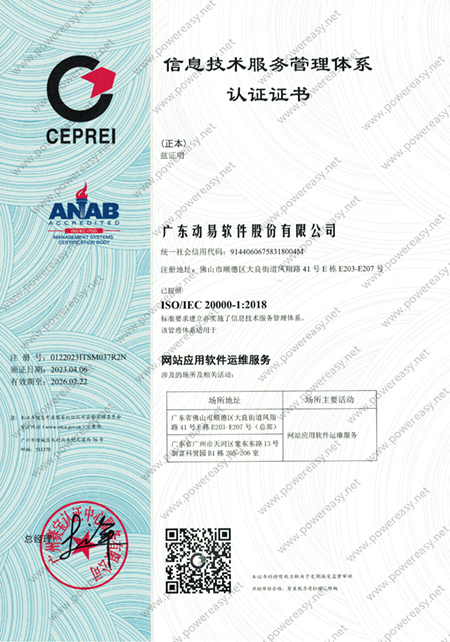 ISO 20000 信息技術(shù)服務(wù)管理體系證書