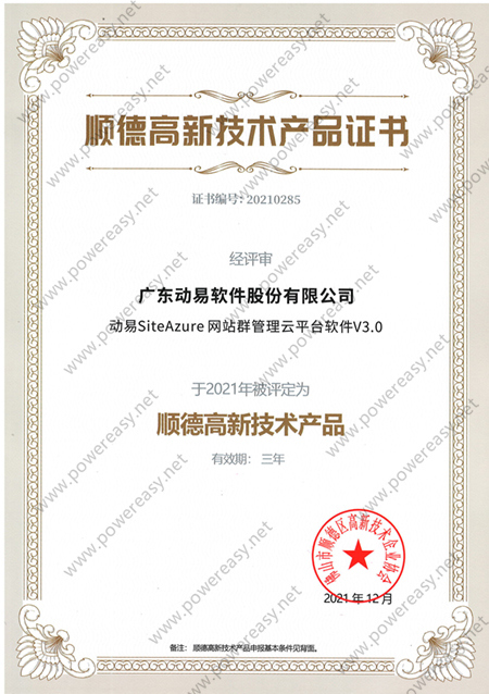 2021高新技術(shù)產(chǎn)品證書—?jiǎng)右譙iteAzure 網(wǎng)站群管理云平臺(tái)軟件V3.0
