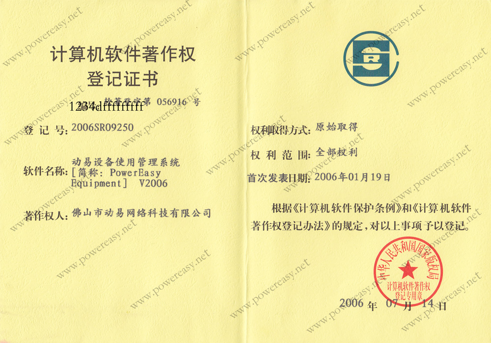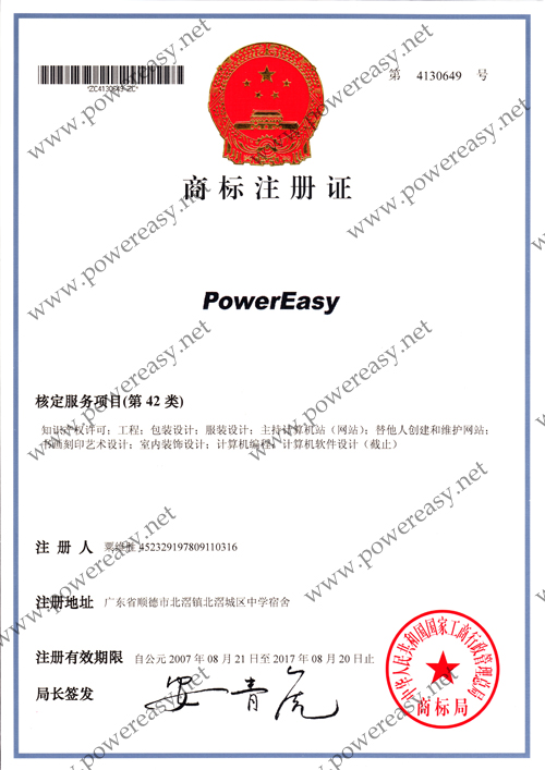 “PowerEasy”商標(biāo)注冊證