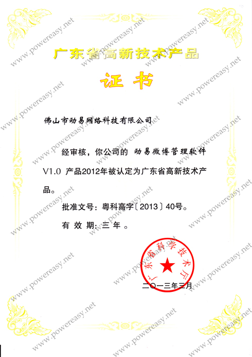 2012廣東省高新技術(shù)產(chǎn)品-動易微博管理軟件V1.0
