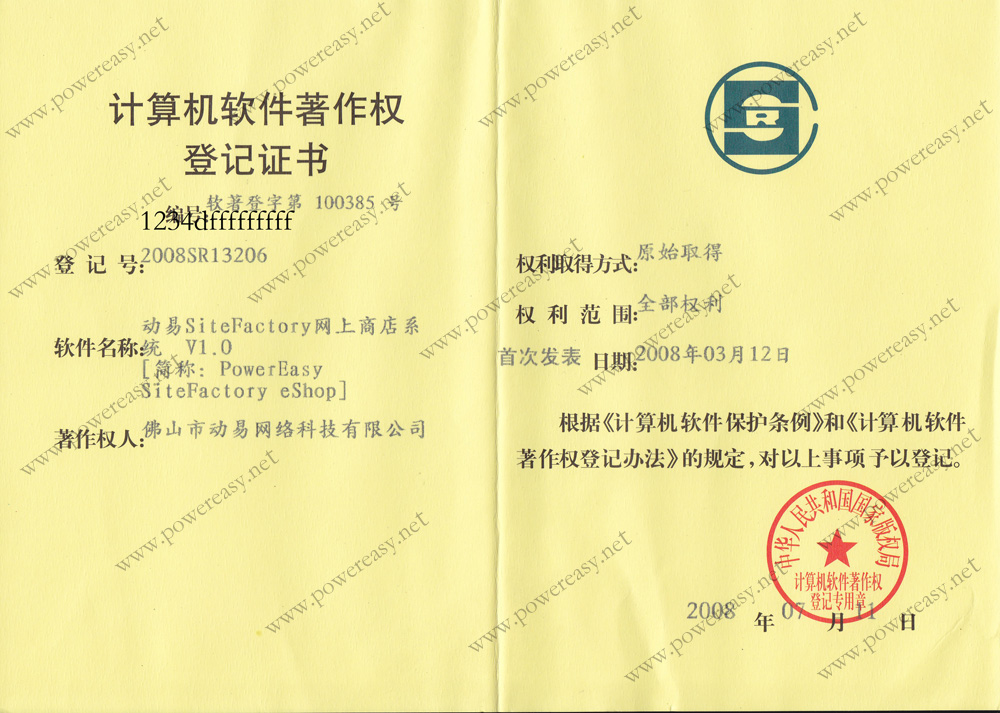 軟件產(chǎn)品登記證書 動易網(wǎng)上商城管理系統(tǒng)V2006