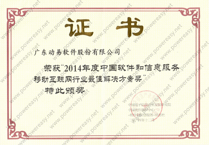 2014年度中國軟件和信息服務(wù)移動互聯(lián)網(wǎng)行業(yè)最佳解決方案獎