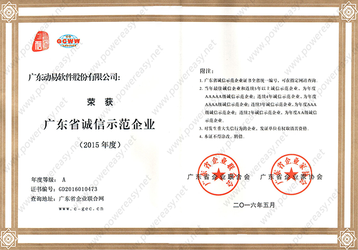 廣東省誠信示范企業(yè)