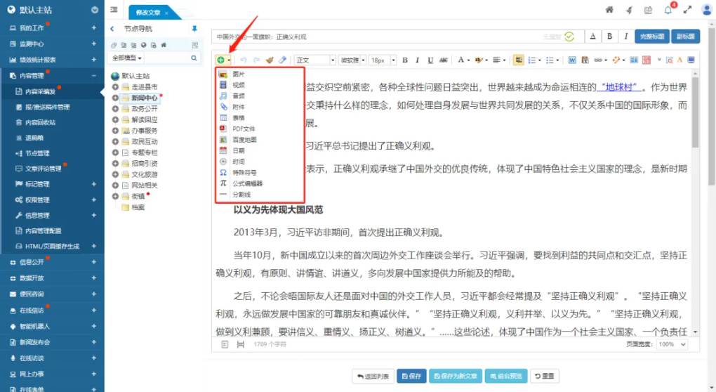 在線 HTML 編輯器是內(nèi)容管理系統(tǒng)的最核心功能之一,它采用與 Word 類似的可視化編輯方式,實(shí)現(xiàn)對(duì)文章內(nèi)容的“所見即所得”的在線編輯效果。