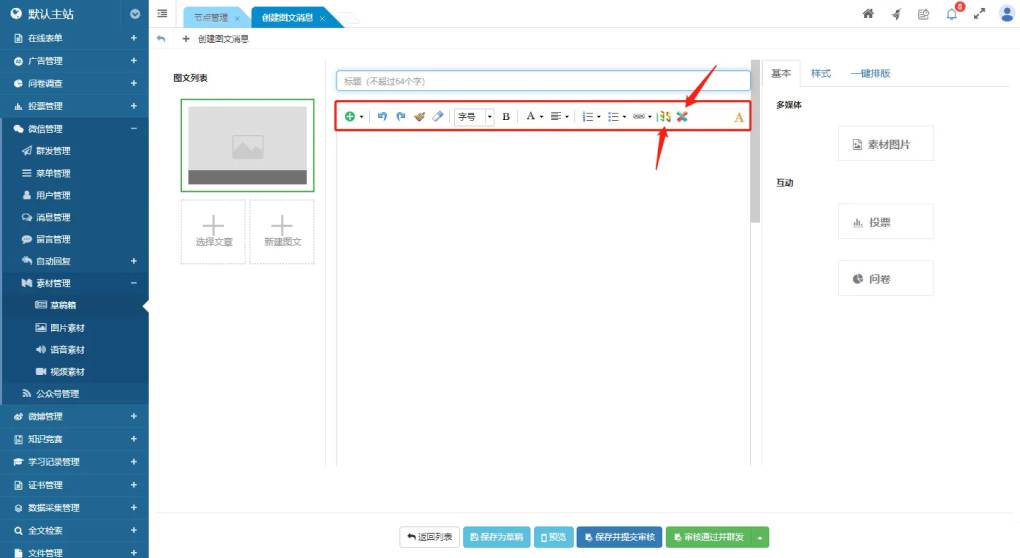 專為微信發(fā)布內(nèi)容編輯設(shè)計(jì),增加了調(diào)用第三方編輯工具的功能按鈕。