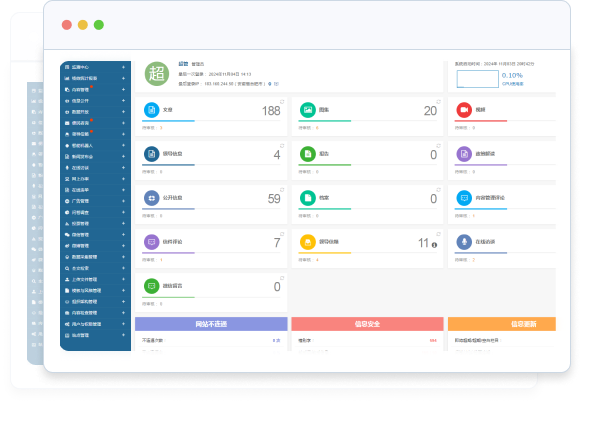 我的工作臺首頁依據(jù)用戶權限,集中展示各模塊的統(tǒng)計數(shù)據(jù)、待審核信息及監(jiān)測中心相關數(shù)據(jù),用戶可通過點擊相應數(shù)字直接跳轉(zhuǎn)至對應模塊進行處理。