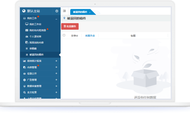 當有被退回稿件時,菜單項名稱上會顯示紅點提醒標記,同時,相應內(nèi)容模型圖標也會顯示紅點標記以作提醒。