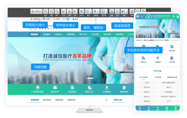 面向醫(yī)院及醫(yī)療機(jī)構(gòu)提供一整套量身定制的解決方案,滿(mǎn)足客戶(hù)對(duì)網(wǎng)站集約化建設(shè)、信創(chuàng)適配等多項(xiàng)需求。該方案集成醫(yī)院日常相關(guān)的眾多業(yè)務(wù)系統(tǒng),可保障在線(xiàn)掛號(hào)和預(yù)約系統(tǒng)的穩(wěn)定高效運(yùn)行,能為醫(yī)院業(yè)務(wù)流程的優(yōu)化、醫(yī)患關(guān)系的改善以及醫(yī)院運(yùn)營(yíng)效率的提高提供全方位的支持。